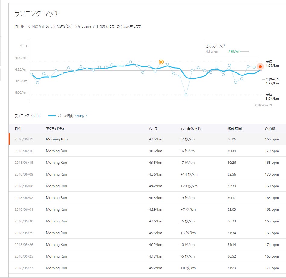 STRAVA っていうサイトで、記録を管理しています。