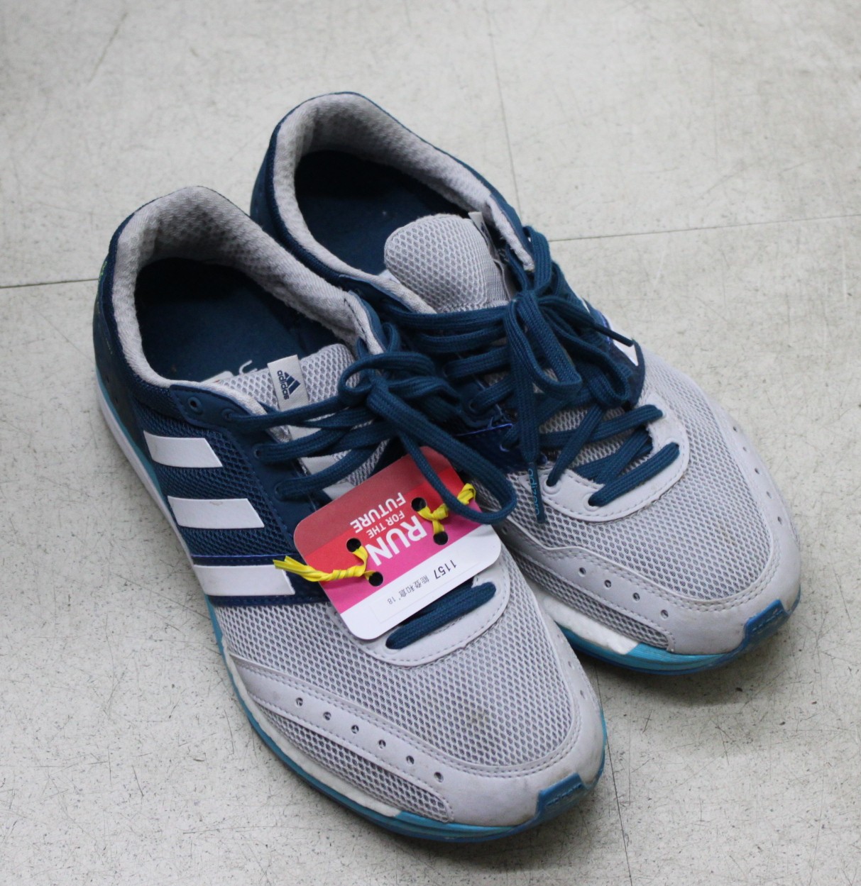 シューズに計測用のタグをつけました。これを付けないと出場したことにならないようです。タイムはインターネットで誰でも見ることができます。宮崎健一は1157番です。