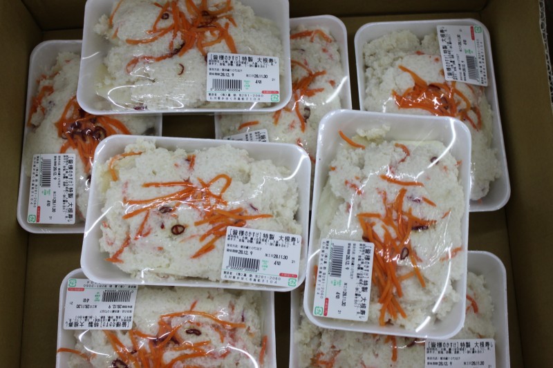 昆布締め と かすけ大根寿司 未選択 2017年12月22日 さわらの昆布締め(冷凍)140g入り540円(税込) 冷凍便、または冷蔵便で発送します。賞味期限は一週間程度です。 10個仕入れてきましたが、残り6個あります。 https://saka-gura.com/169_3247.html 実はまだ、中を見ていないですが、中身は3段か4段くらいになっていて、ひと口サイズに切られた魚が昆布にはさまれて、並んでいると思います。 中を見るのは、年末になり、今年は売る気ナシの私ですが、来年こそはたくさん販売できると嬉しいかもって思います。 2日ほど、冷蔵で漬け込んだあと、冷凍されているようです。 あっさり目の、粘り気は少なめの、現代風の味付けだと思います。 昔の昆布締めは旨みがじっくりしみこみ、腐りかけというと聞こえは悪いですが、ネバネバなものだったようですが、今は流行らないようです。 残り6個ですが、まだ年末まで時間があるので、追加も可能です。 かすけ だいこん寿司 最終納品を12/28にお願いしています。 12/25朝まででしたら追加可能です。 https://saka-gura.com/169_1657.html この商品、入荷が気まぐれで安定しないので、困ります。 味は良いです。 [0回]
