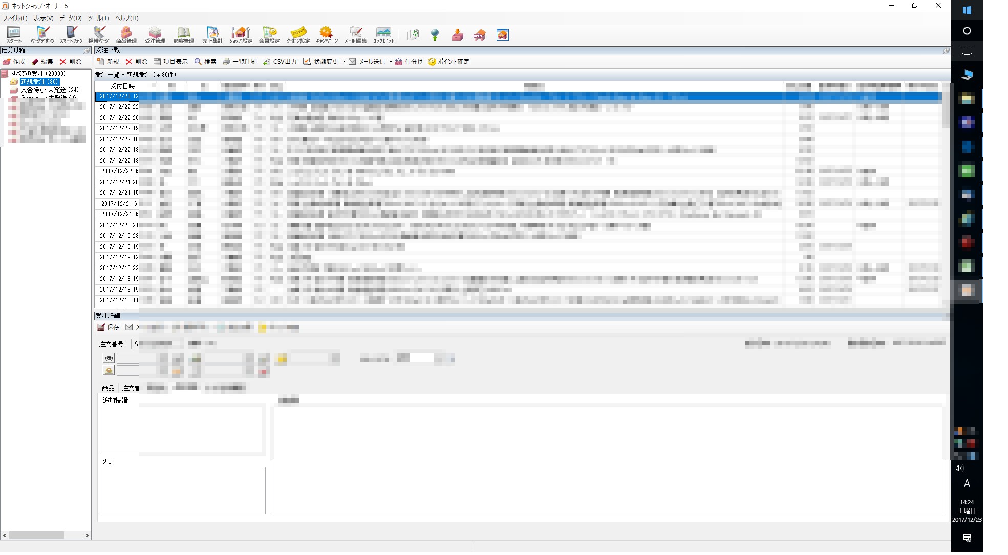 20000件 受注しました 未選択 2017年12月23日 画像の左上です。 受注ソフトの受注件数 のべ数 20000件になりました。 賞品はないですし、何も変わりません。 なおこれまで78回も購入されている、常連のお客さんが20000件目でした。 30000件目指して、また頑張ります。 本当にありがとうございます。 [1回]