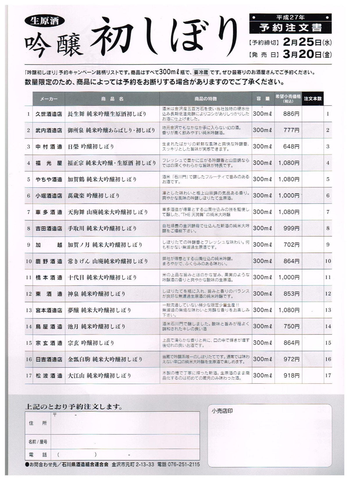 最初は天狗舞さんにお願いしていたんですが、ここ数年は手取川さんにお願いしています。