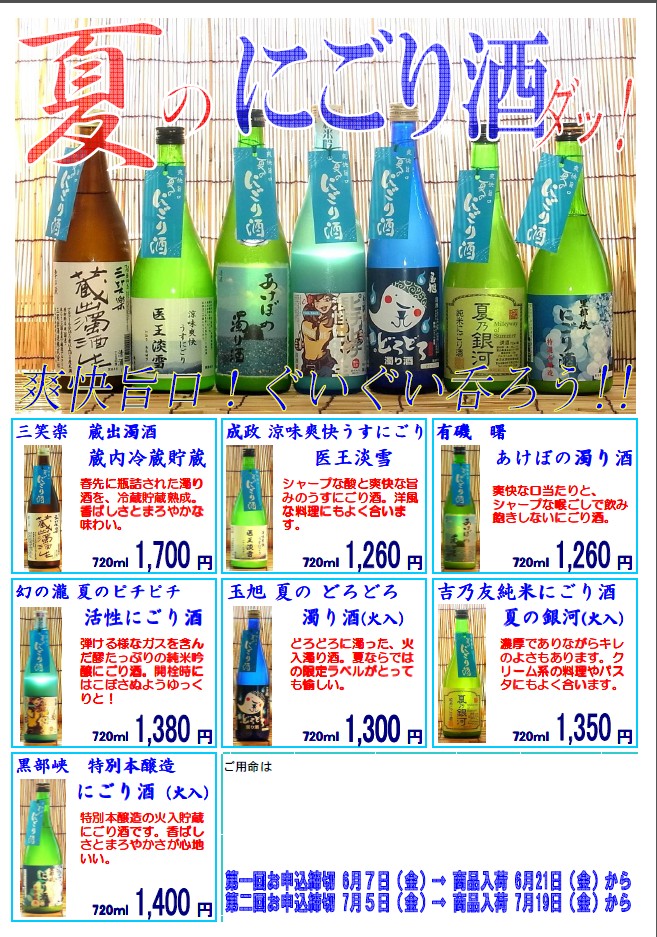 夏のにごり酒、入荷していました。