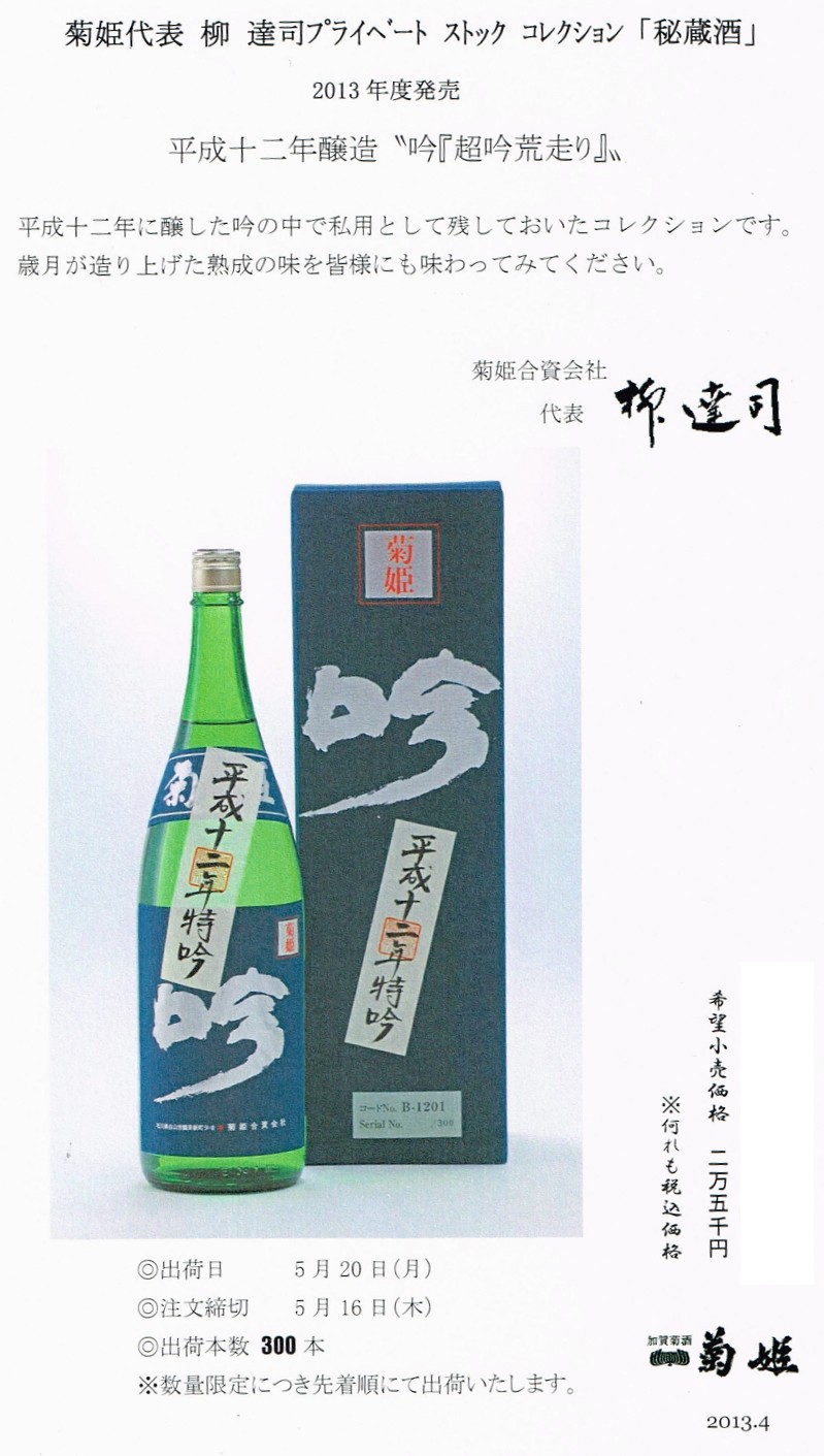 味は、蔵元さんで、搾りに立ち会って、確認してきたので、知っていますが、もう一度、今晩確認しようと思います。