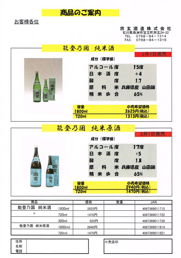 奥能登の白菊、谷泉と天狗舞、手取川、菊姫などを販売しています。