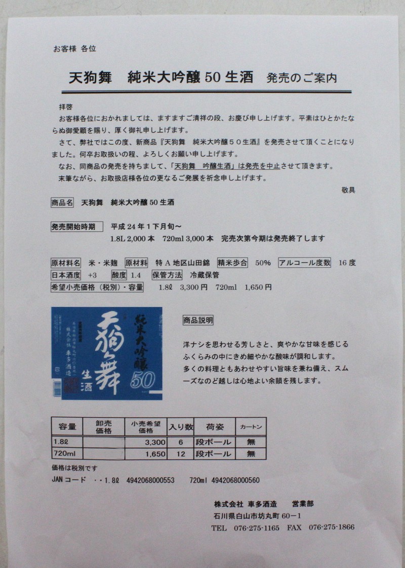 天狗舞さんから、まもなく1月下旬に新発売です。