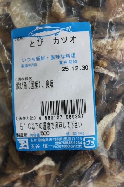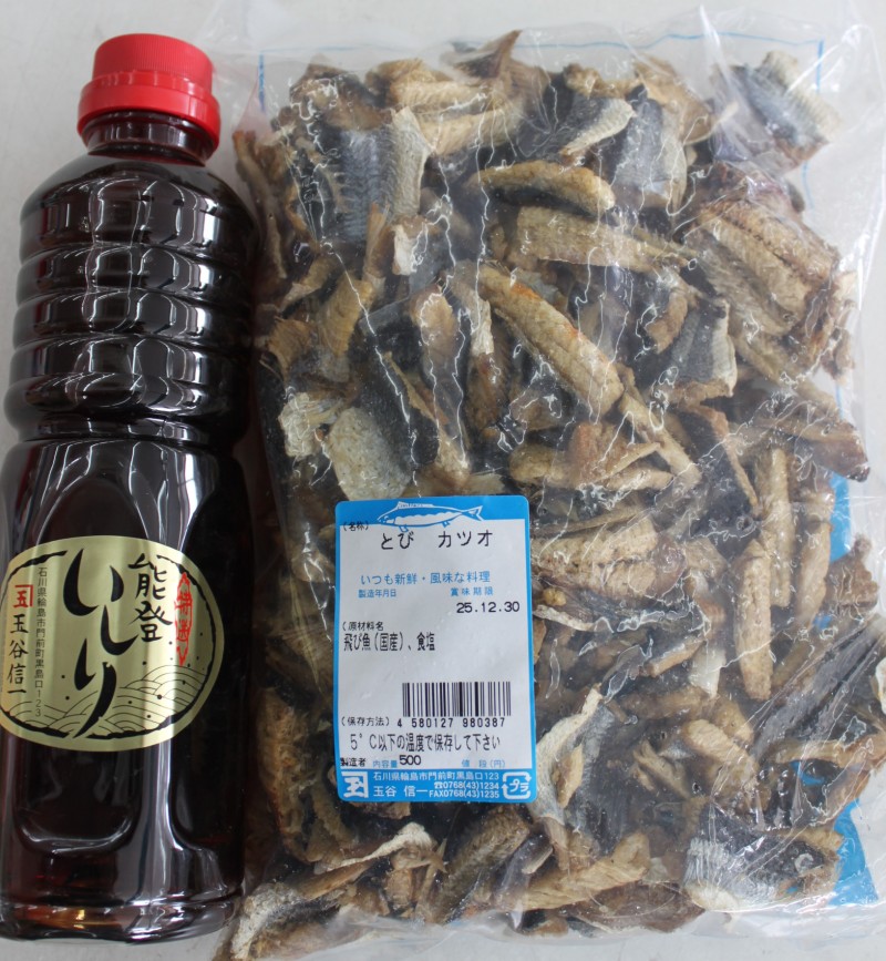とび カツオ 未選択 2011年07月01日 市場で声を掛けられ、仕入れてきました。ボトルに入っているのは、いしり でもうひとつの魚の干物みたいかものが飛魚です。いしりの生産者 玉谷さんが作った干物ですから、間違いないと言うことで知れてきました。500g入りで3281円です。非常に良い香りがします。問屋さんの話では、そうめんのダシに良いのでは?とのこと。いしりのほうも、手探りで売り始めましたが、しっかり固定客のいる商品です。500g 3281円でなかなか売れる気はしませんから、初回限定で、100gに小分けして100g656円で売ろうと思います。希望の方は連絡ください。本当は自分が食べたいから買ってきた、ただそれだけでした。 [0回]