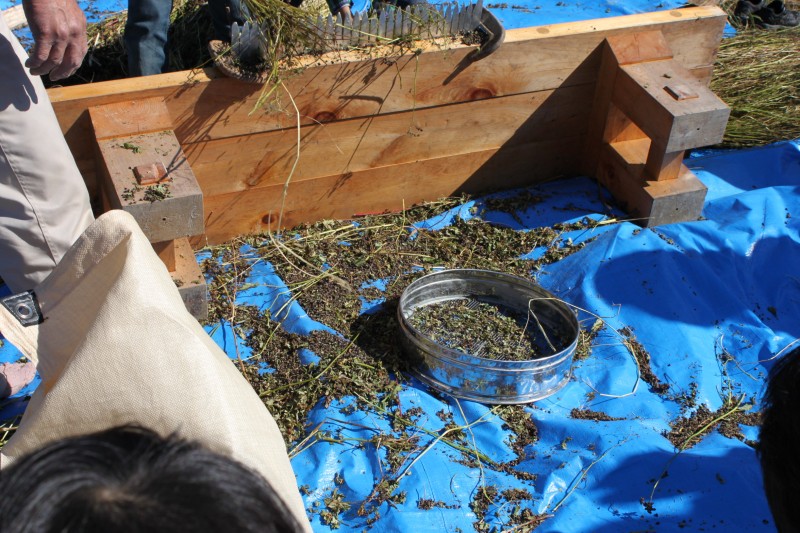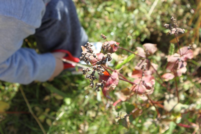 「そば」の実を摘む作業と