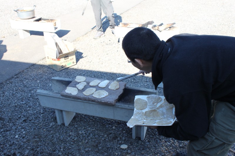 パン(ナン)を作り、焼いたり