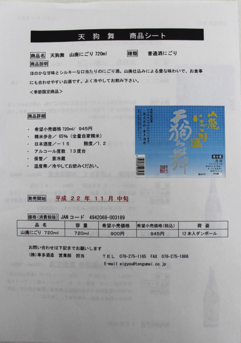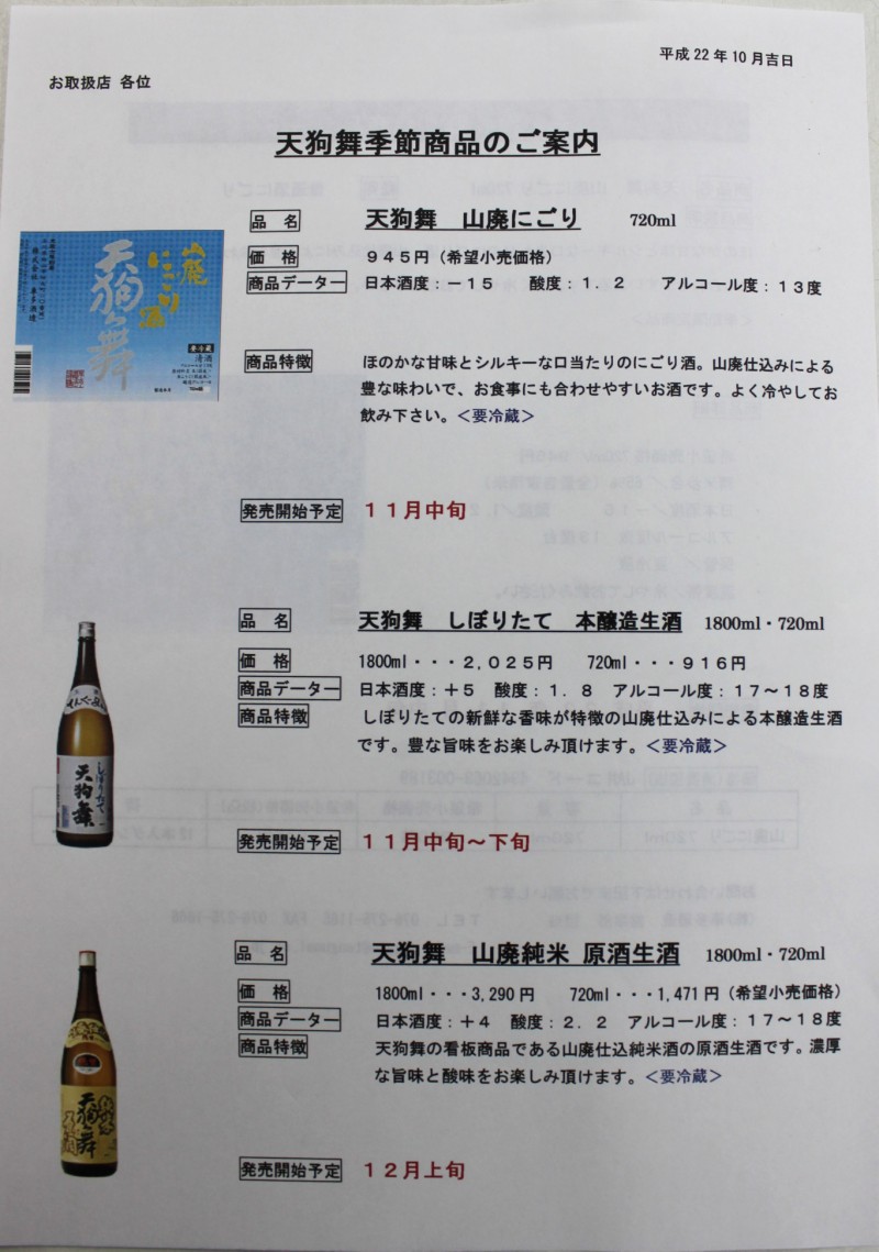 ③は昨年の春に発売された、天狗舞のにごり酒とは中身が異なる内容になりました。