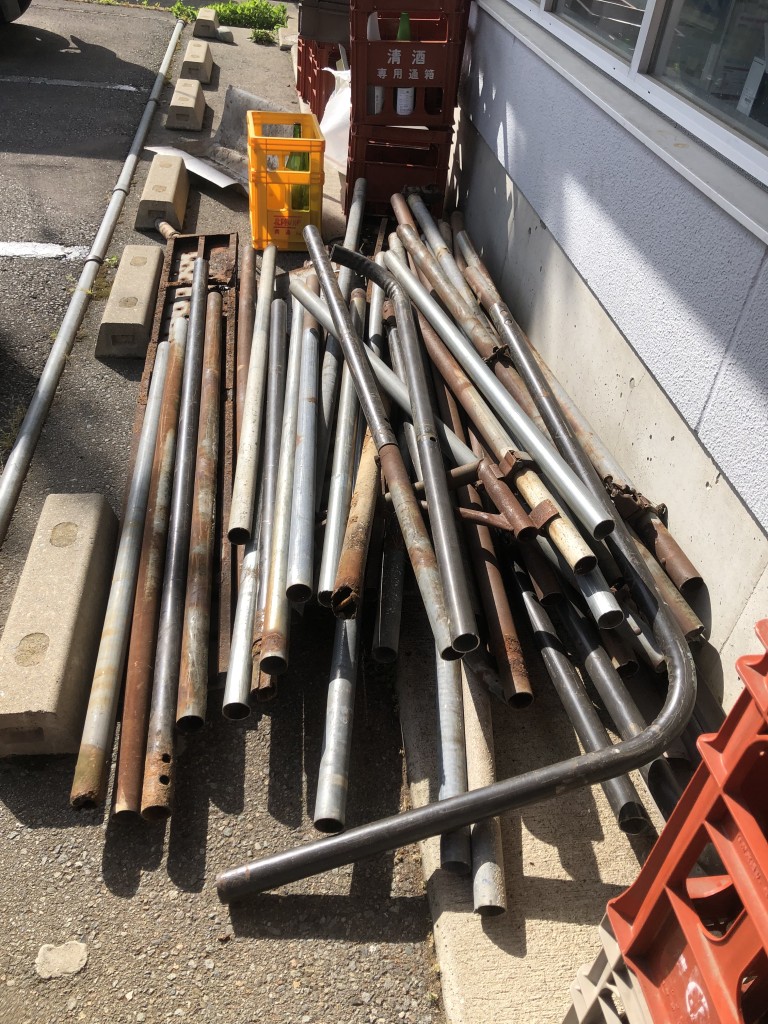 単管パイプを車にのせれるサイズに切断し、自宅まで運びました。