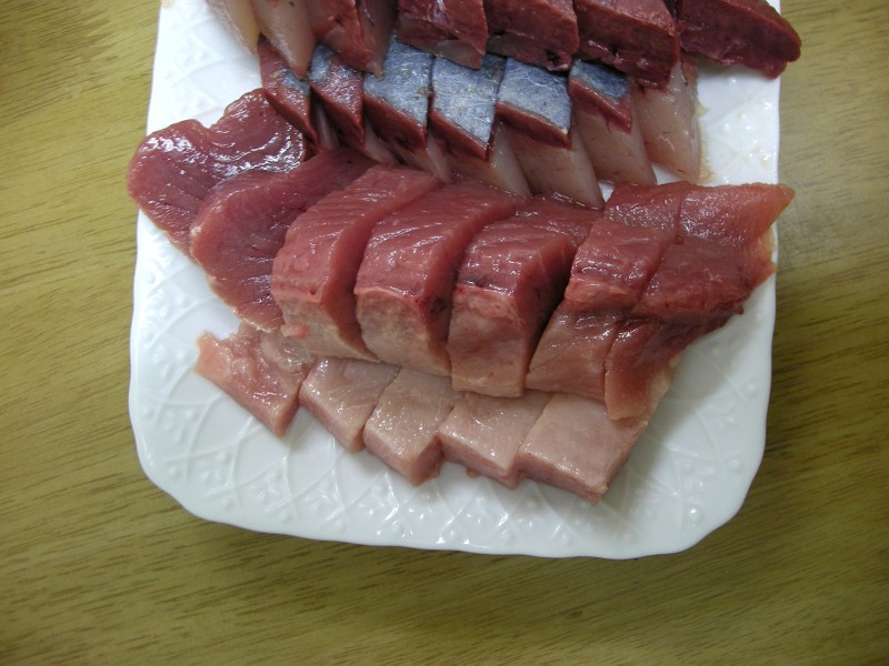 さて、2つめの写真は、マグロのアップです。まぐろとフクラギですね。