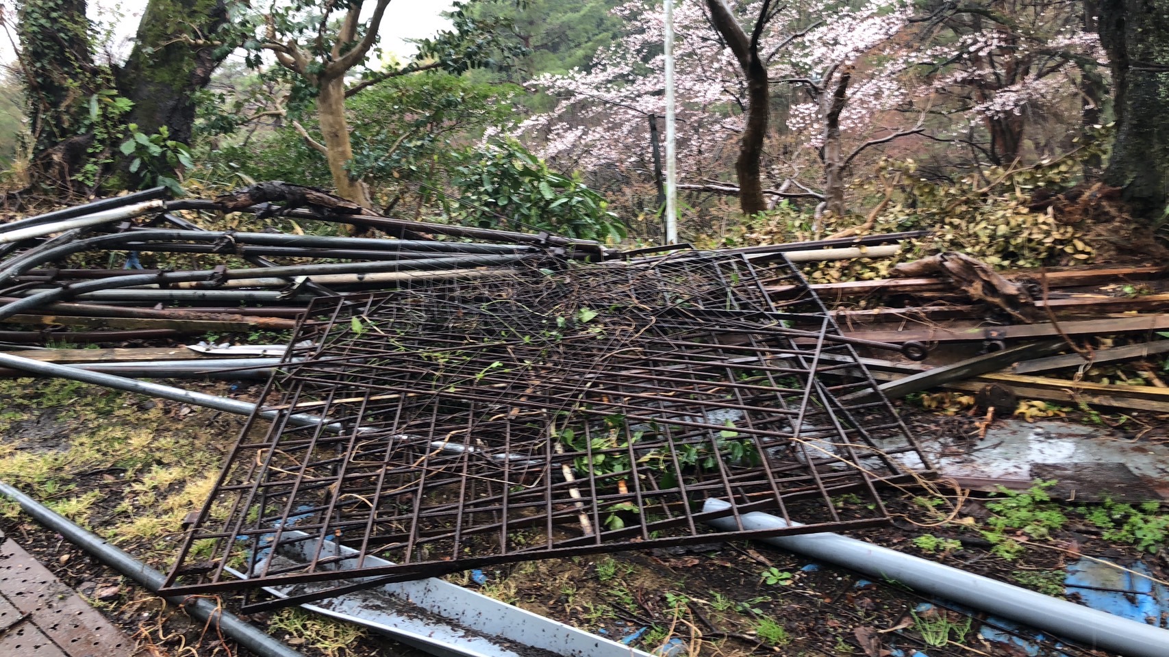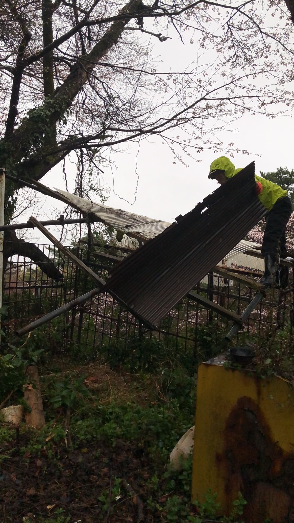 撤去完了。曲がった見苦しい単管パイプは抜くと地盤に影響するので、次回以降に切断する
