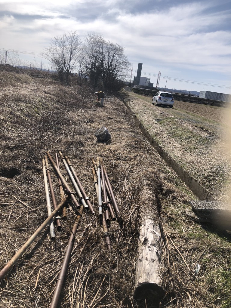 親戚のおじさん、手伝ってくれた。このあと大木が移動できなくて、かといって切断もできなく、おじさんのパワーで運んでくれました。私より年上なのに、私より力持ち。というか、この時点で、午前中に抜根した後で、かなり力はなくなっていました。