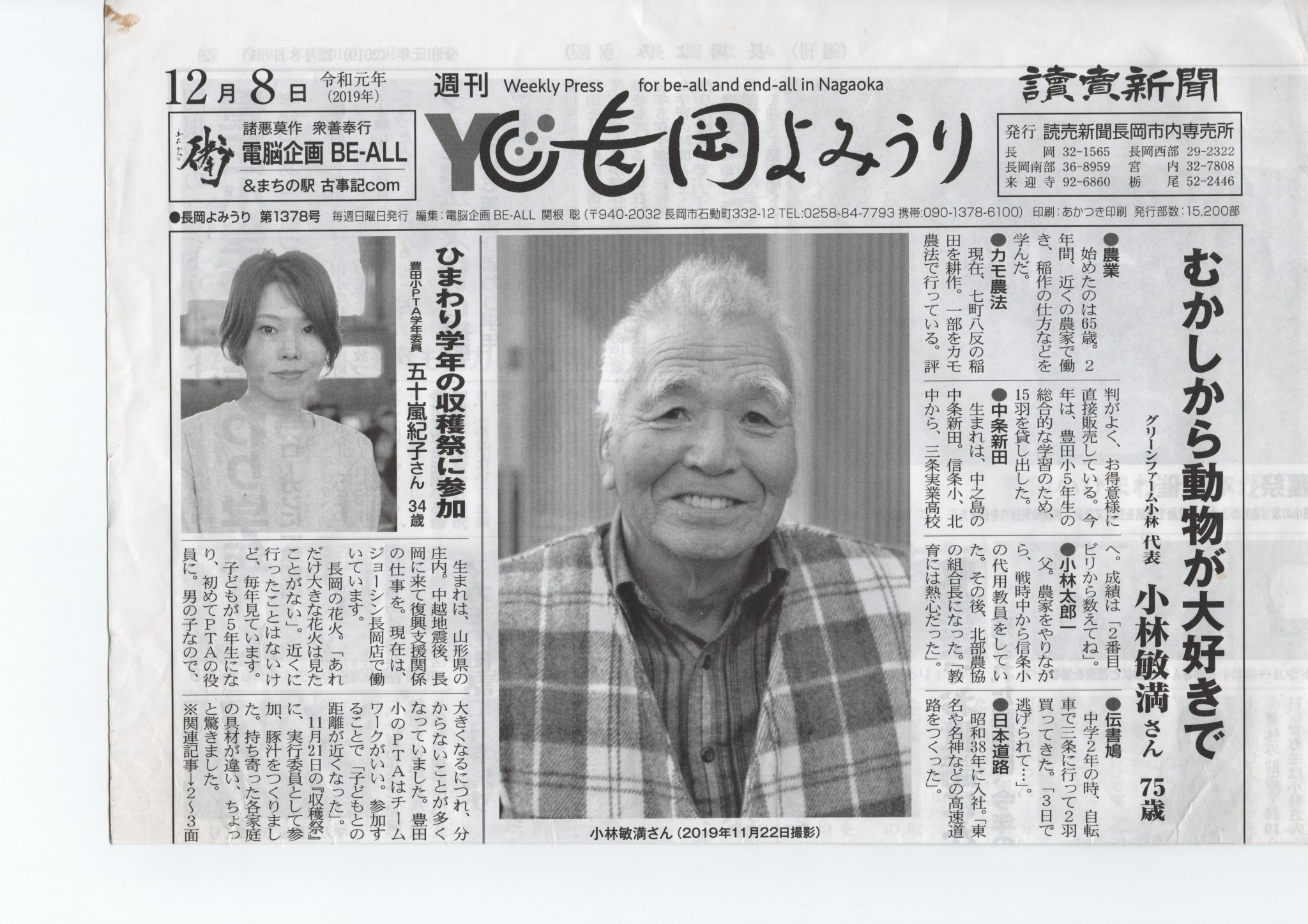 1月に長岡に行った時、父の農地を管理してくれる人の一人が、この父が載っている読売新聞の長岡の記事をくれた。