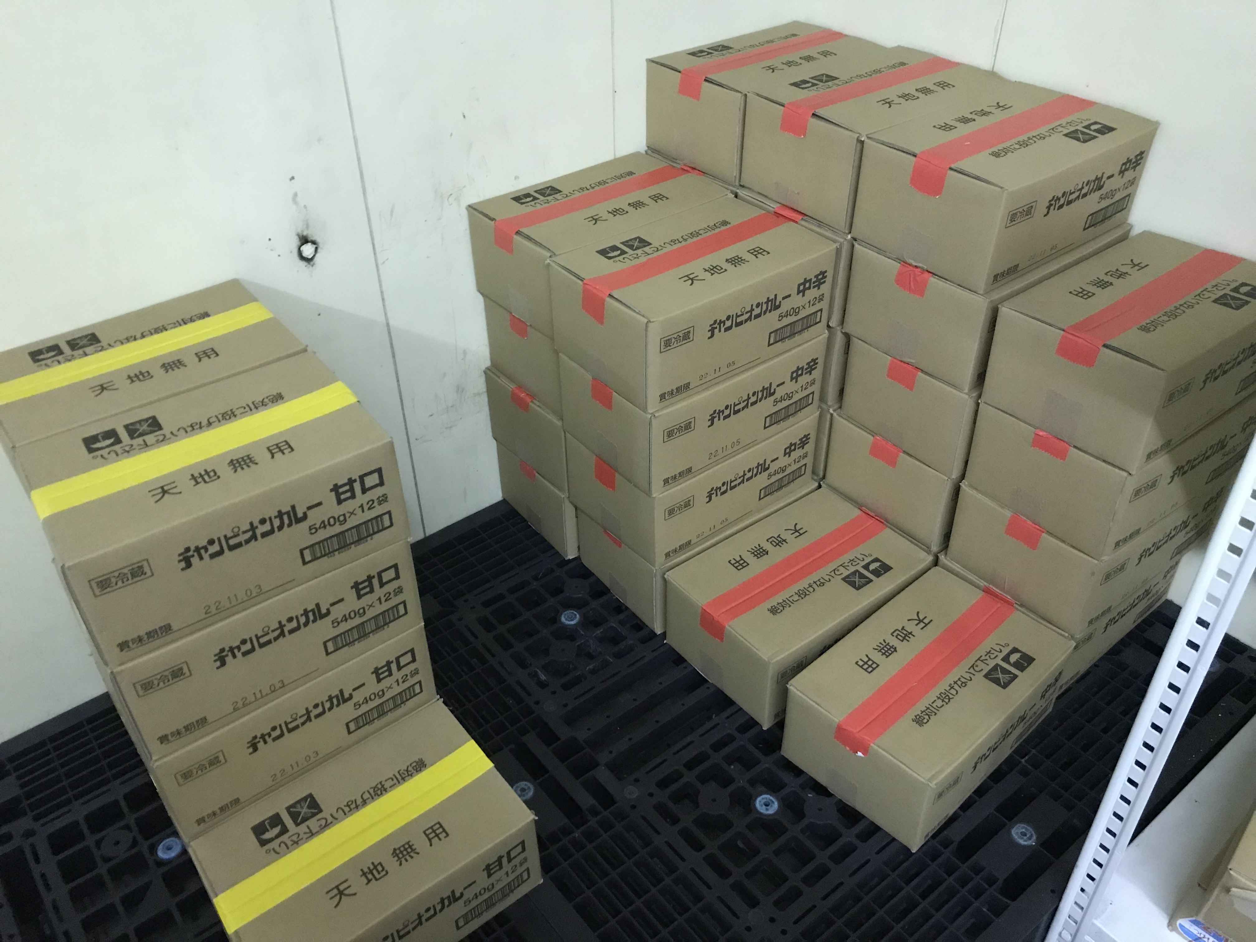 チャンピオンカレー 仕入先の冷蔵庫で、こういう状態で保管されていて、1個からでも、好きな数だけ仕入れて販売しています。