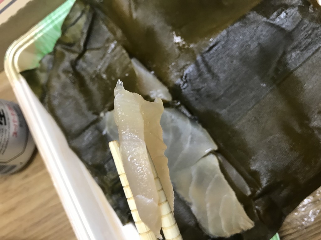 さわらの昆布〆 未選択 2022年01月15日 さわらの昆布〆 200g 810円 https://saka-gura.com/169_3247.html 販売しています。 中は2段になっていて、全部で18切れくらい入っていました。 残り5パックです。 指が映っている画像をよく見ると、ねばねばした糸を引いているのが見えるはず。 昆布のヌメリがあって、これは正常な商品です。 醤油は昆布の味がもったいないので、私はつけません。 年末に冷凍の状態で入荷して、冷凍保管しています。解凍後4~5日で食べれば良いです。 ”さわら”は、カジキマグロの石川県での呼び方です。 アサヒスーパードライの缶 は 2020のオリンピックのロゴが入っています。昨年の夏ごろに出た限定のラベルでした。 スーパードライも売れなくなったんです。売れないのはスーパードライではなく、うちのお店でした。 [0回]