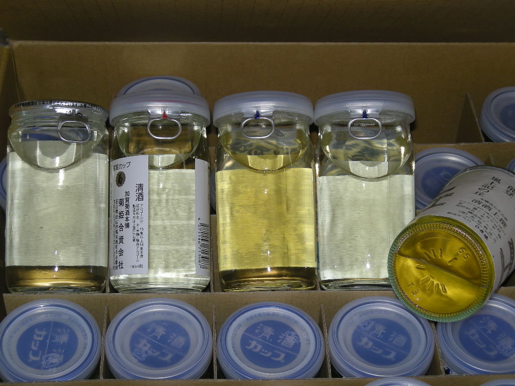 カップ酒、入荷直後なのにかなに 黄色いぜ