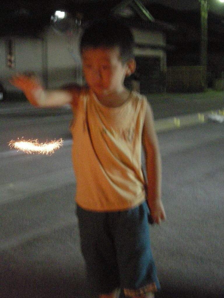 息子と店の前で、花火をしました。