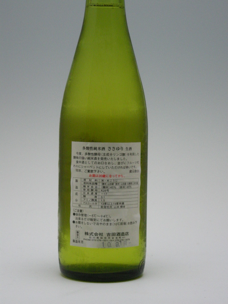多酸性純米酒 ささゆり 手取川 500ML1529円