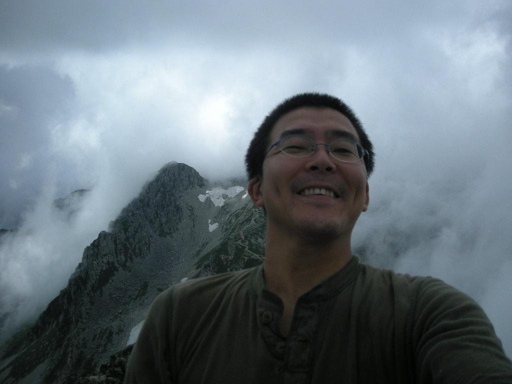 山頂でセルフタイマーで撮影したら、こんな変な顔になったんです。