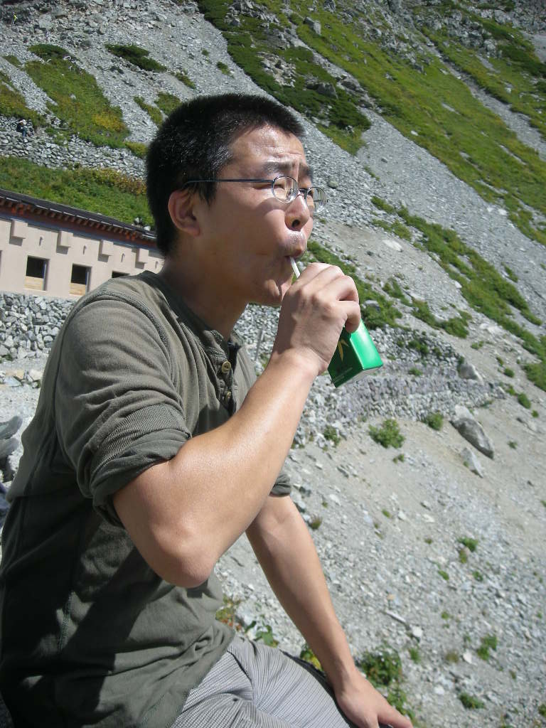 ストローでお茶を飲む姿は、妙に変な顔ですが、日差しがまぶしかったんです。