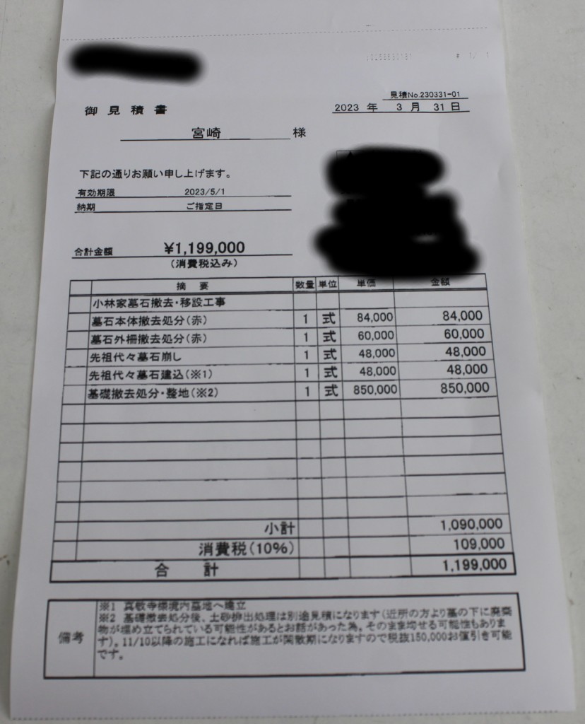 お墓の上部(墓石)業者に撤去してもらい、坊さんにお金を払いお経をあげてもらうが