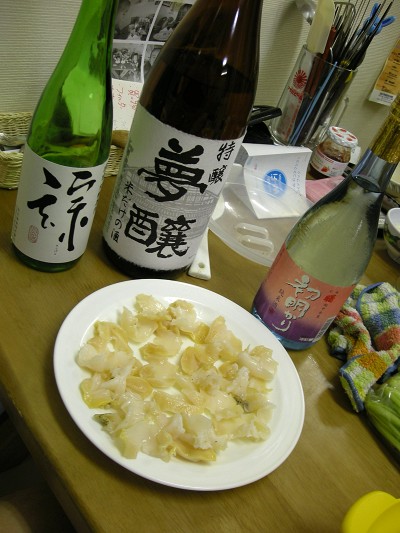 梅貝刺身と飲んだ酒