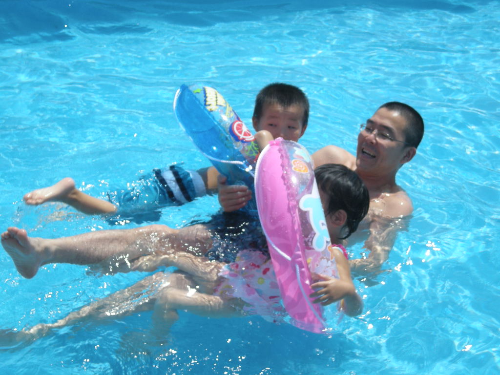 しかし、子供より楽しく、浮き輪で浮いてきました。